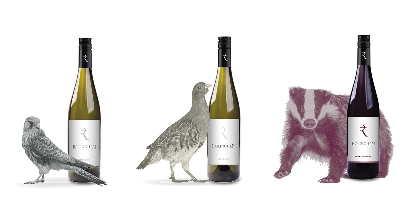 Belgische fijne wijnen van een goed jaar. Hierboven zie je door ons ontworpen schetsen van de dieren die regelmatig de wijngaard bezoeken en die mee de basis van de huisstijl hebben gevormd.